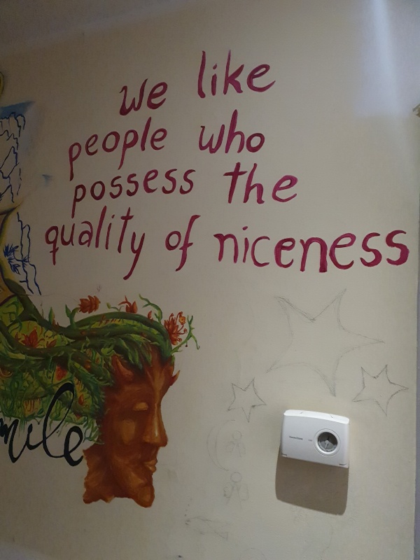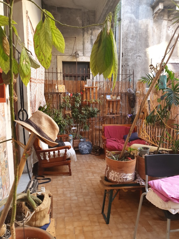 Comprenant que la route risque d’être aussi galère pendant un bon moment, on se dirige dans la première gare, en direction de Catania, une des grandes villes de Sicile. Il fait déjà nuit, et là c’est Ludmilla, l’amie et ancienne coloc de Tatiana, qui nous sauve à distance en nous donnant le contact de son ami Santo. Il accepte de nous accueillir dans l’auberge de jeunesse qu’il rénove avec une dizaine de volontaires. Nous sommes accueillis dans la douceur et avec un bon repas, l’ambiance est très zen.