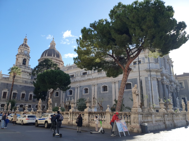 On peut visiter Catania, qui a un point commun avec sa ville jumelée française Grenoble : depuis le centre ville, on peut voir le relief montagnard. Ici, il s’agit du volcan Etna ! On fête nos 2 mois de voyage avec des « pasta alla norma » (pâtes avec des aubergines grillées et de ricotta frite).
