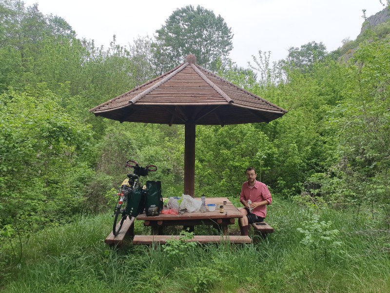 Wir werden in Pirot, einer Stadt mit 50.000 Einwohnern im Südosten des Landes, abgesetzt. Die ersten Dinge, die uns auffallen: Es ist (sehr) grün und es gibt (viele) Menschen auf Fahrrädern! Zum ersten Punkt ist zu sagen, dass es Frühlingsanfang ist und die Flora gleich sehr anders ist als in der Türkei. Zum 2. ist anzumerken, dass die Serben offenbar Anhänger:innen von pedalbetriebenen Zweirädern sind, unabhängig von ihrem Alter (dem der Menschen oder der der Fahrrädern 😉 ).