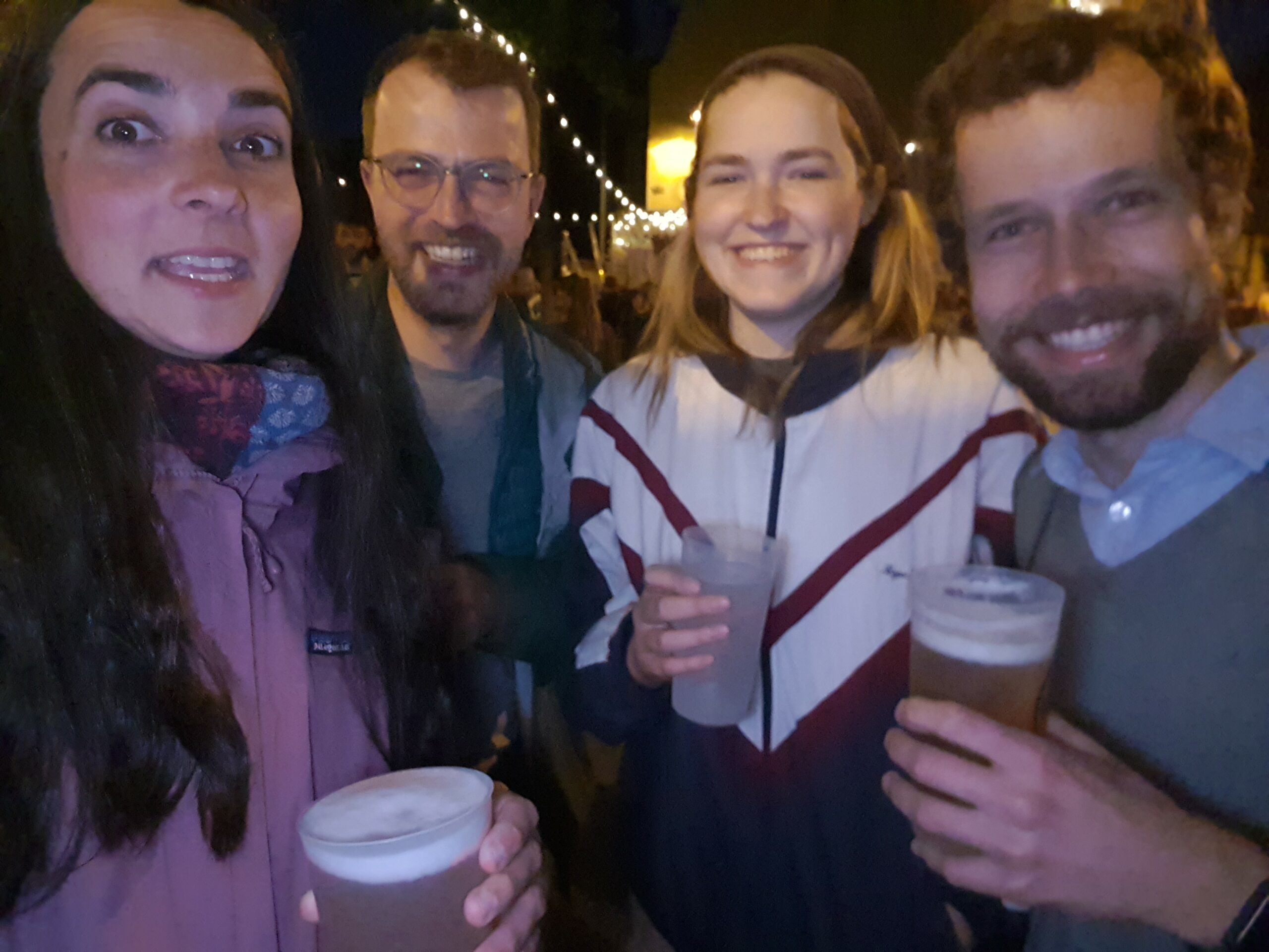 Anschließend kümmert sich Krystof, unser Warmshowers-Gastgeber, um uns. Wir haben ein leckeres Abendessen und Gespräche mit ihm und seinen Mitbewohner:innen Zelma und Tony, die ebenfalls im Warmshowers-Netzwerks sind! Die Atmosphäre ist angenehm, wir erzählen uns gegenseitig von unseren Reiseabenteuern, sie und er haben tolle Anekdoten zu erzählen, das bringt uns zum Lachen. Sie nehmen uns mit zu einem Festival in der Neustadt.