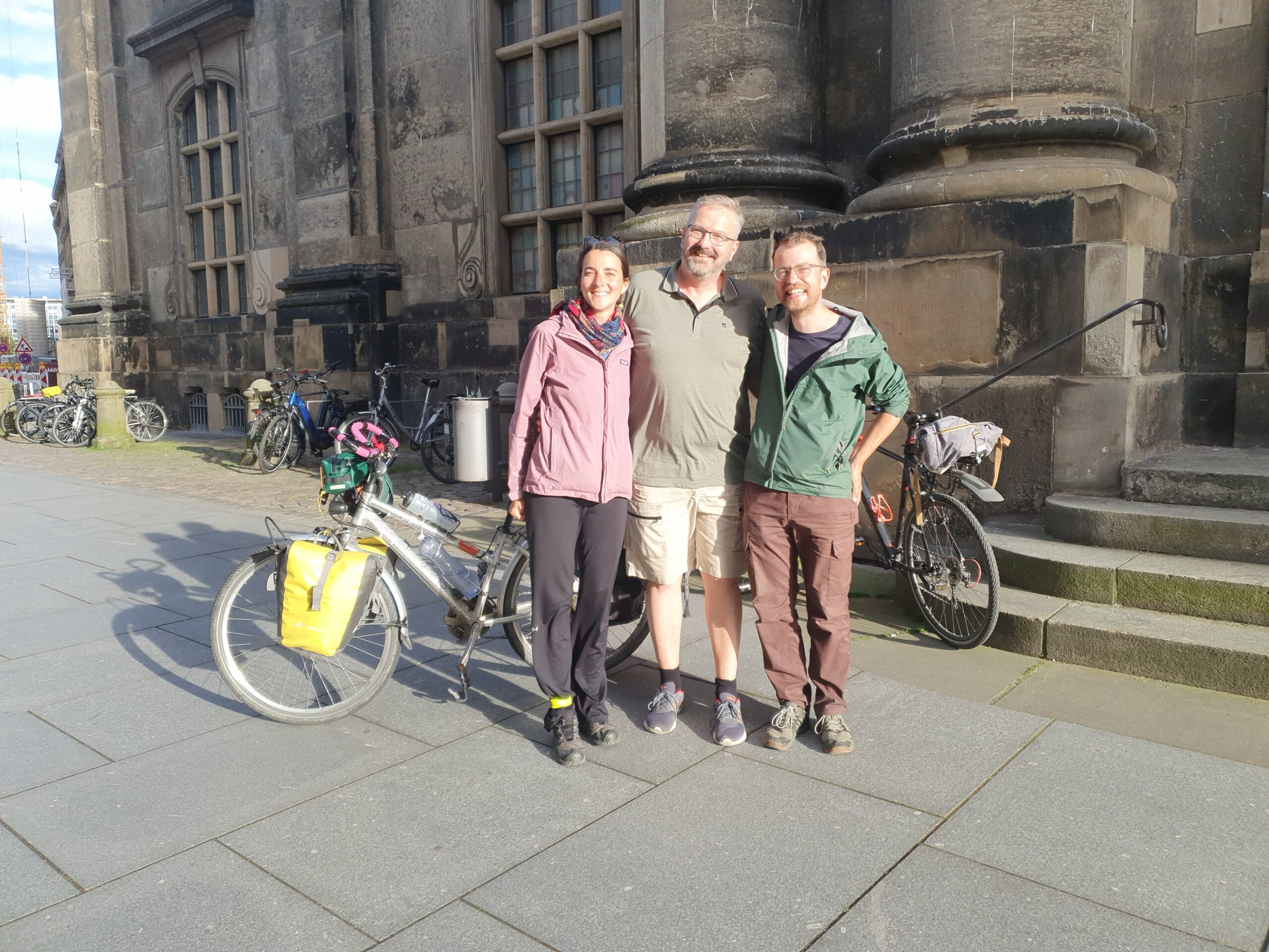 In Pirna, der ersten deutschen Kleinstadt, empfängt uns die Familie Freitag vom Netzwerk Warmshowers. Sie erwarten uns mit einem typischen Abendbrot: (für Tatiana immer besonders) gutes Brot und viele gute Sachen, die mensch darauf legen kann. Sie haben ein schönes Haus und einen schönen Garten, aber nicht das schöne Auto, das normalerweise dazu gehört (auch mit zwei Kindern). Sie kommen in ihrer Gemeinde ohne aus, und wenn sie ausgehen oder Urlaub machen, dann mit dem Fahrrad, dem Zug oder einem Carsharing-Auto. Wir finden das sehr inspirierend.