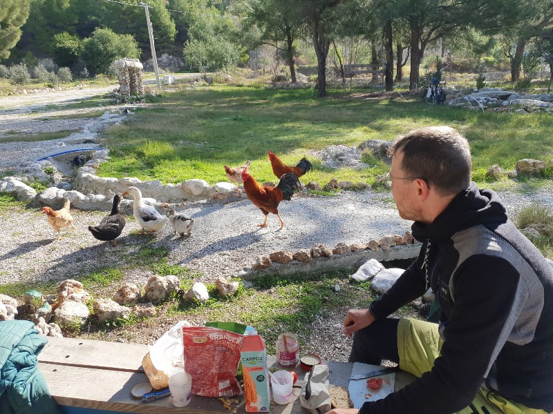 Wir setzen unsere Entdeckungsreise in der Türkei, dem ersten nicht-europäischen und muslimischen Land unserer Reise, fort. Auf der (nicht ganz perfekten) Straße im Hinterland begegnen wir immer wieder Tieren: Hunden, Katzen, Schafen, Ziegen, Hühnern und Truthähnen. Wir sehen viele Schäfer:innen sowie Landarbeiterinnen, und sind erstaunt über die körperliche Flexibilität der älteren Menschen, die häufig in ihrem Hof auf dem Boden sitzen und arbeiten am Boden verrichten.