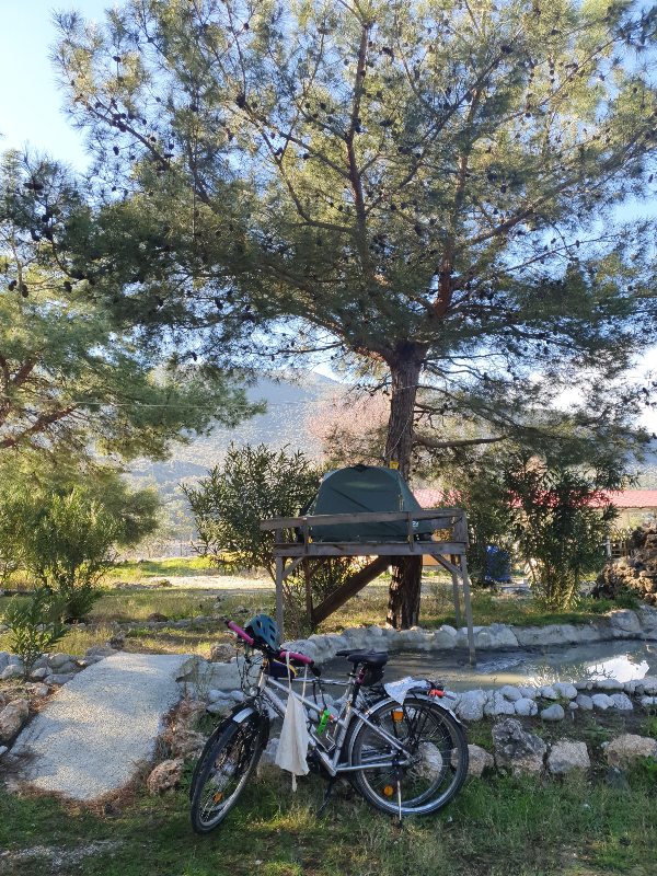 In Saklikent, einer bekannten Schlucht von 40 km länger, verkürzt der saisonbedingte hohe Wasserstand unsere Besichtigung. Die in der Hochsaison stark besuchte Gegend zählt zu dieser Zeit nur wenige Touristen. Es war daher überraschend, dass Tatjana im Vorbeigehen das Stichwort „Ardèche“ hörte. So verbrachten wir einen netten Nachmittag mit Camille und Vincent, einer Krankenschwester und einem Krankenpfleger aus der südlichen Ardèche, die ein Jahr lang mit ihren drei Kindern im Wohnmobil unterwegs sind.