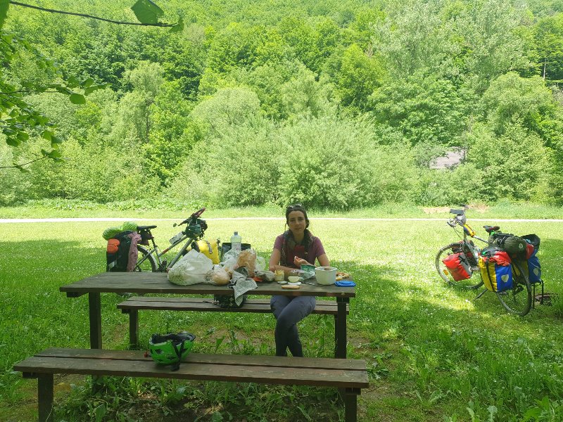 Dann fahren wir auf einem sehr schönen Radweg weiter und schlagen unser Zelt im Garten des Waldhauses einer Warmshowers-Familie auf. Am nächsten Tag bewundern wir Draculas Schloss, Kaffee trinkend bei Gewitter, bevor wir weiter zur polnischen Grenze fahren.