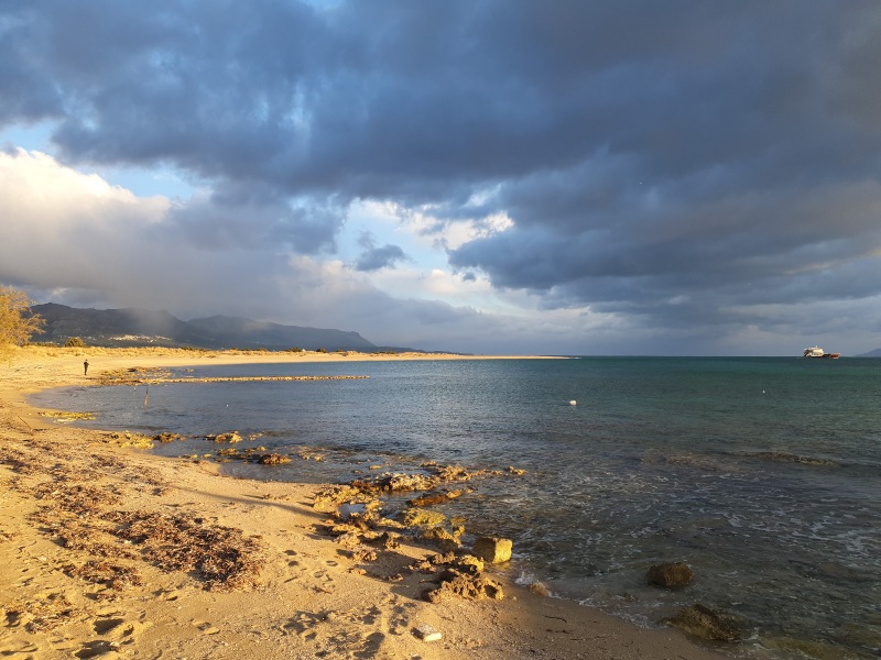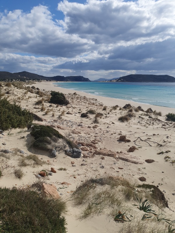 Im Süden der Halbinsel Lakonia machen wir einen Zwischenstopp auf der kleinen Insel Elafonissos, die 300 m vom Festland entfernt liegt. Es gibt starke Böen und wir entschließen uns, lieber einen Wandertag einzulegen. Es ist menschenleer, die Natur ist ruhig und das Meer postkartenblau.