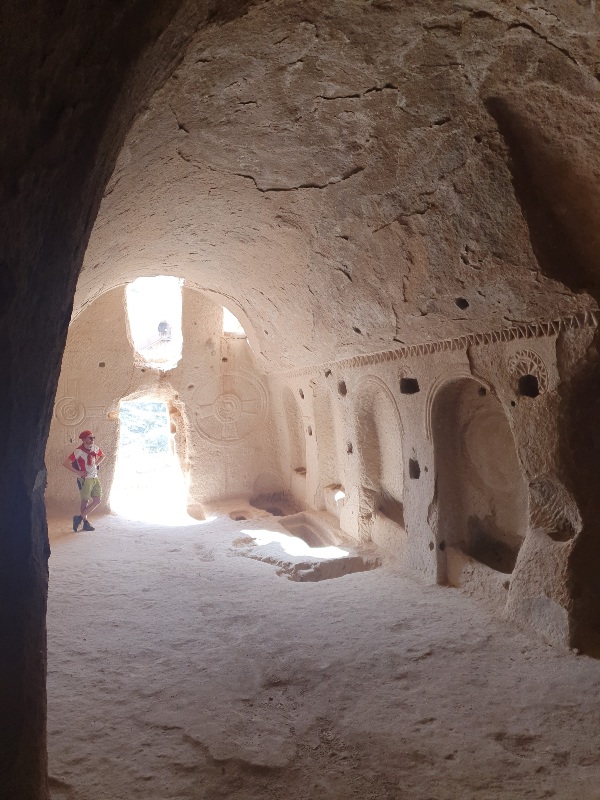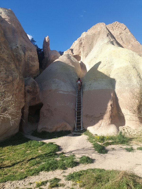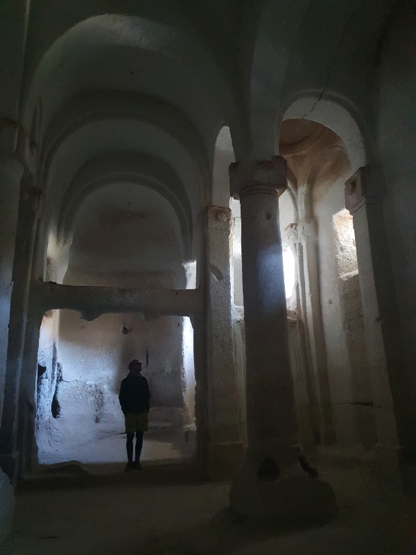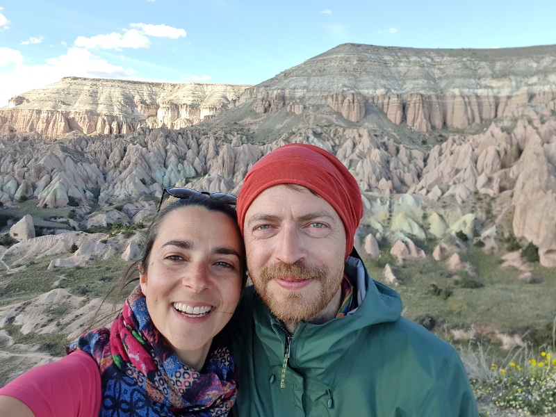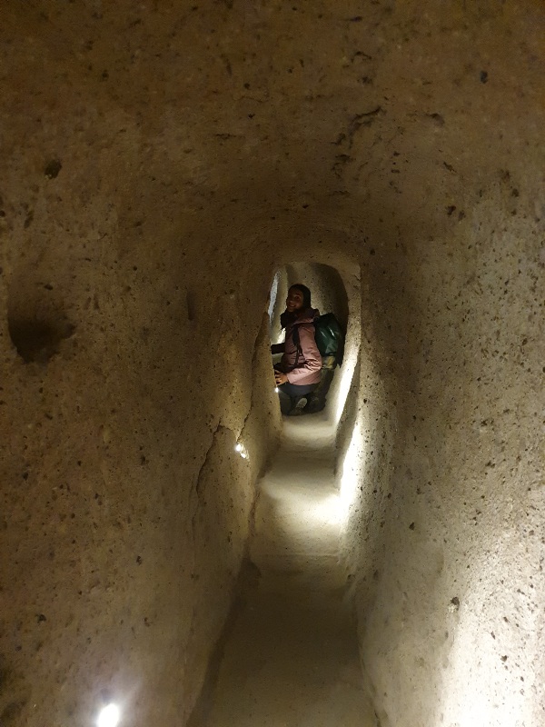 Julian schleppt sich weiter mit Infekt herum, um die ungewöhnlichen Landschaften mit ihren beeindruckenden Tuffstein-Felsformationen zu sehen und zu bewundern. Wir wandern durch einige Täler, in Felsenstädte, in die unterirdische Stadt Kaymakli (8 Stockwerke unter der Erde! Ursprünge im 8. Jh. v. Chr.), und auch zu einem ausgezeichneten Teppichhändler 🙈.