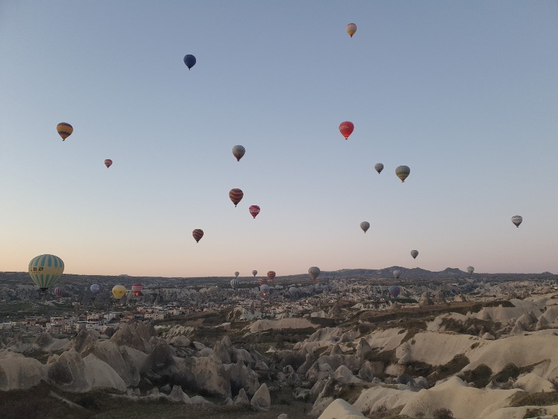 Natürlich wollen wir auch die berühmten Heißluftballons sehen. Wir stellen unser Zelt an der geeignetsten perfekten Stelle auf, verbringen eine sehr kalte Nacht (3°) und um 6 Uhr morgens ist es soweit: Ein magisches Spektakel! Schaut einfach die Fotos an.
