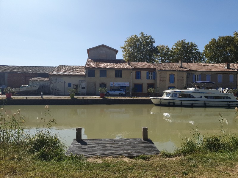 Petit passage à Castelnaudary où un événement militaire a l’air de se préparer. Ça nous tente bof alors on pédale jusqu’à poser notre tente en bord de canal, près d’un bateau de location comme on en a vus beaucoup aujourd’hui, et d’où on entend les rires de retraités anglais qui jouent aux dés.
