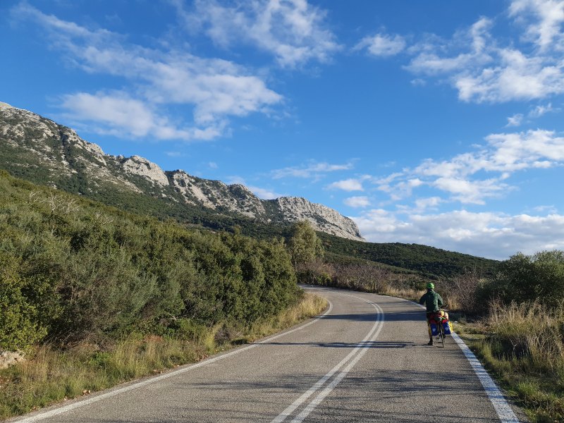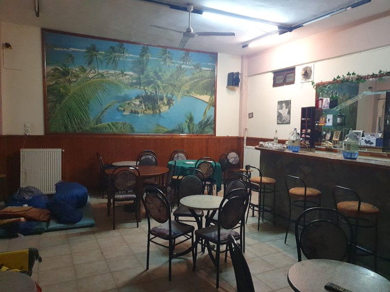 ArrivĂ©s dans un petit village, nous nous rendons dans un cafĂ© « du cru », ou des anciens jouent aux cartes en fumant pendant que la gĂ©rante regarde « qui veut gagner des millions » en grec. Nous ne parlons pas grec, ils et elle ne parlent pas d’autres langues, c’est donc avec des gestes et des sourires que nous communiquons. Ce jour-lĂ on se fait offrir du thĂ©, de la bière, du pain, du fromage et de l’huile d’olive. Quelle gĂ©nĂ©rositĂ© ! On finira par dormir dans le cafĂ©, ce qu’on apprĂ©cie au vu du froid annoncĂ© pour la nuit.