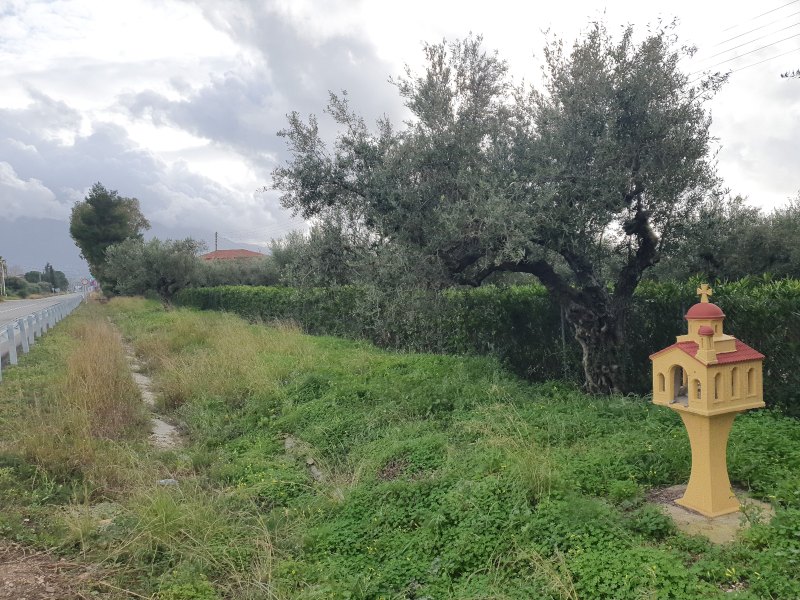 Nous quittons Patras et roulons vers le sud. Le paysage est beau, nous traversons de petites montagnes couvertes d’oliviers, et avons vue sur les montagnes enneigĂ©es. Nous voyons de très nombreuses chapelles miniatures au bord de la route : nous apprendrons qu’elles commĂ©morent les morts de la circulation…