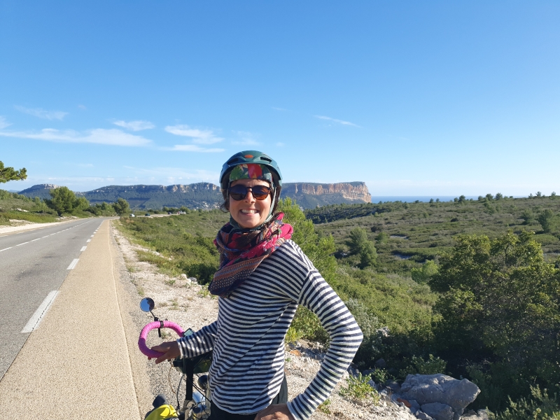 Nous quittons Marseille et nous attaquons à nos premiers dénivelés. Tatiana pousse le vélo une partie de la montée, et Julian atteint le col de la Gineste (330m) en pédalant ! Première longue descente, on apprend à manier le frein.