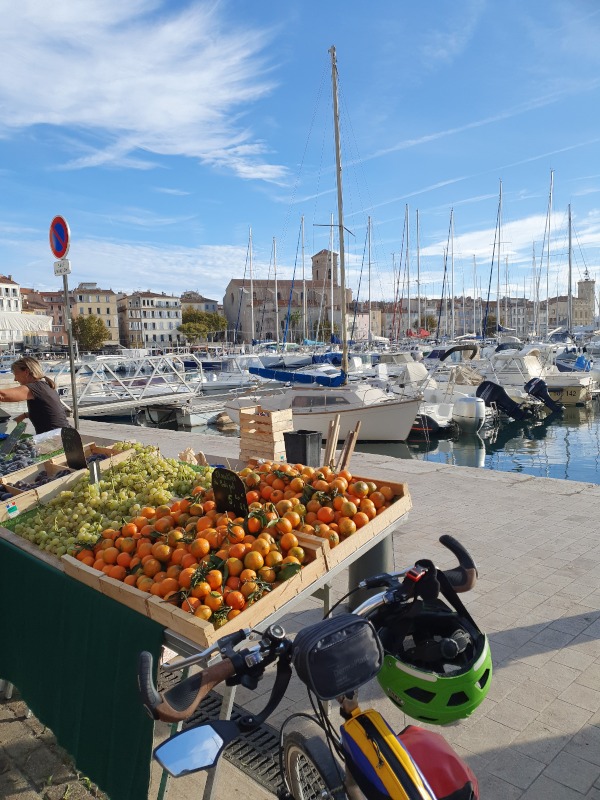 Redescendus à la Ciotat, un habitant nous indique un parc où planter la tente. La nuit, nous entendons les sangliers renifler autour. La lecture nocturne nous apprendra qu’il faut uriner dans les parages pour les éloigner, technique que nous pratiquerons par la suite. Nous sommes réveillés au matin par un groupe de joggueurs, et nous rendons au marché domenical.