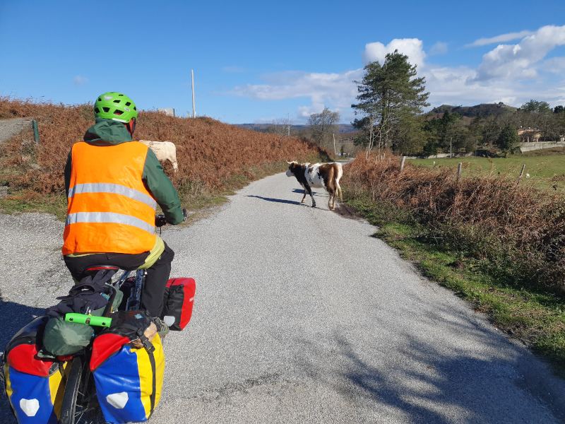 Alors que nous faisons notre 5ème jour sur la belle véloroute, nous croisons 2 italiens à vélos : ceux-ci s´arrêtent net dans leur descente, trop contents de voir des copains cyclistes. On discute quelques minutes dans un virage, puis chaque groupe repart de son côté.