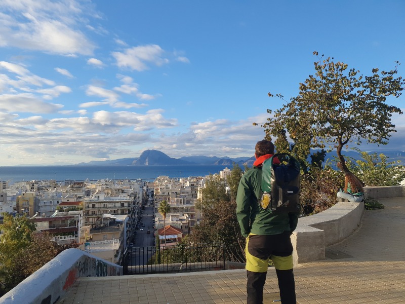 Le soir, c’est chez Spiros, sosie grec de Jean Ferrat, que nous logeons : un hôte Couchsurfing qui accueille à gogo dans sa maison en bord de mer. La soixantaine et la clope au bec, il nous fera rire avec son français bourré d’expressions argotiques et ses anecdotes de voyage en pagaille. Il nous aide à organiser la suite de notre voyage. Au matin, on ramasse les oranges dans le jardin pour faire un jus des plus frais, avant de grimper en haut de la ville pour s’éblouir encore de la beauté du paysage.
